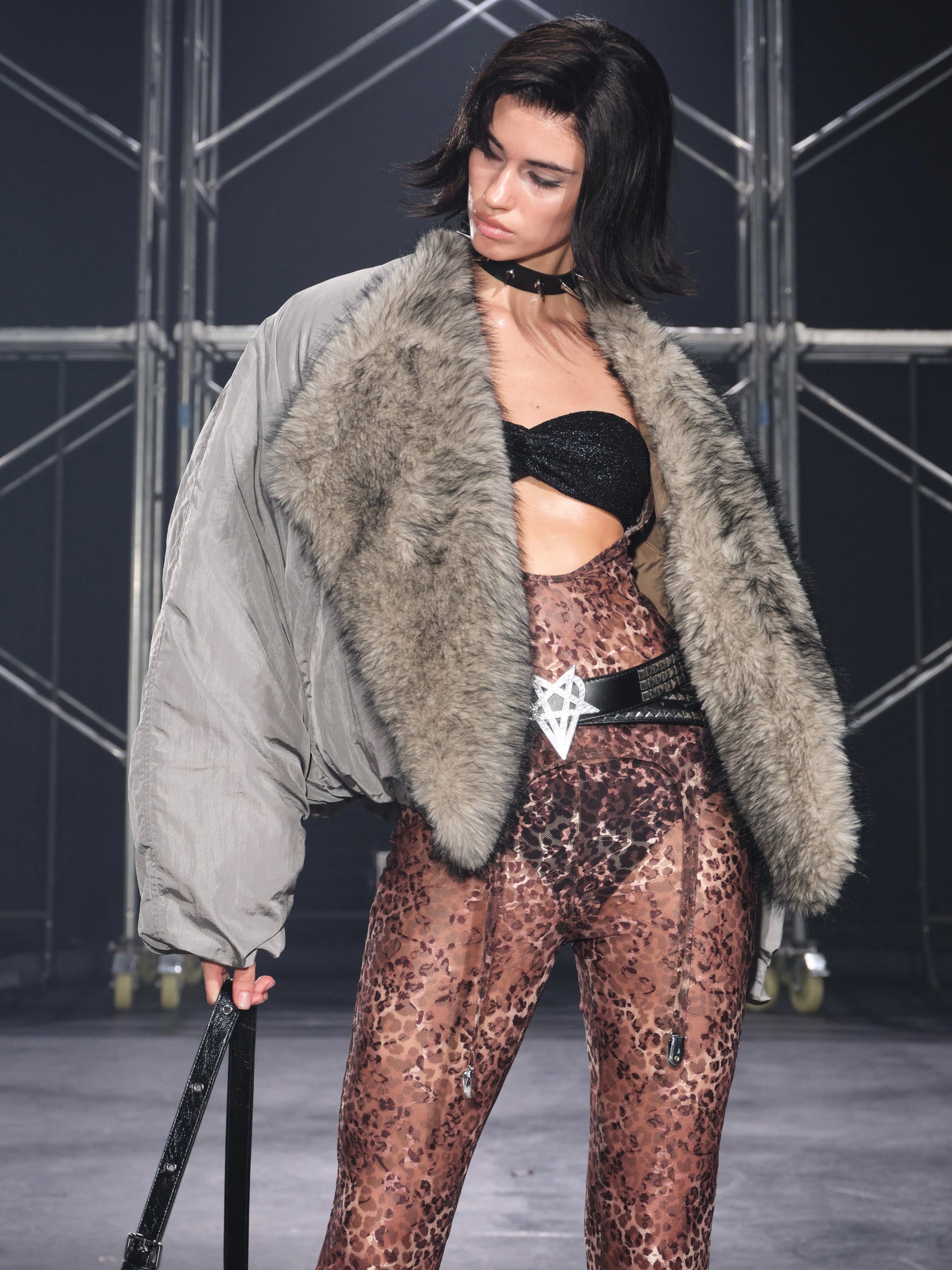 Glacier Faux Fur Trim Puffer Jacket Gray